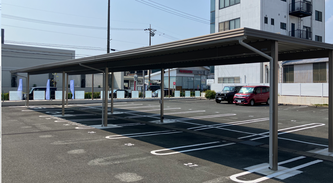 9月に再生可能エネルギーの創出と活用を実現する本設備の導入を実施しました。お客様用駐車場8台分のス